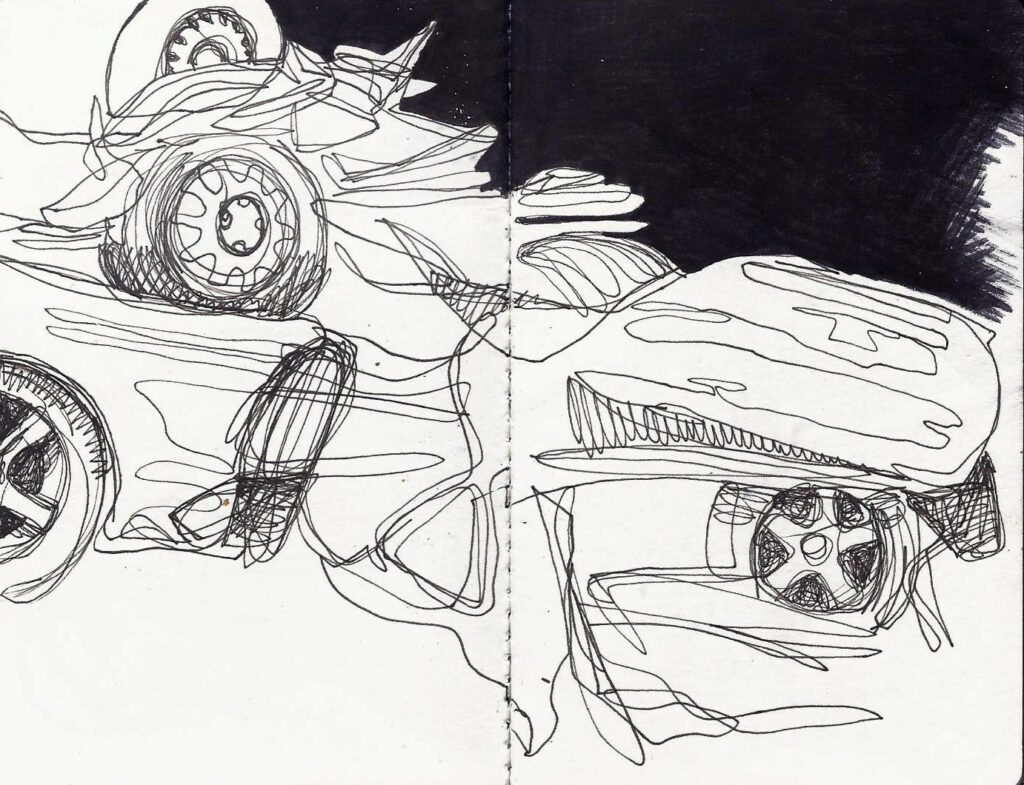 On y devine déjà les obsessions récurrentes de mon travail : la superposition des éléments, la tension entre le figuratif et l’abstrait, et une quête de mise en logique. Ce dessin, presque sismographique, sont les premiers échantillons des autogrammes. Une ébauche qui respire le mouvement, entre esquisse et manifeste.