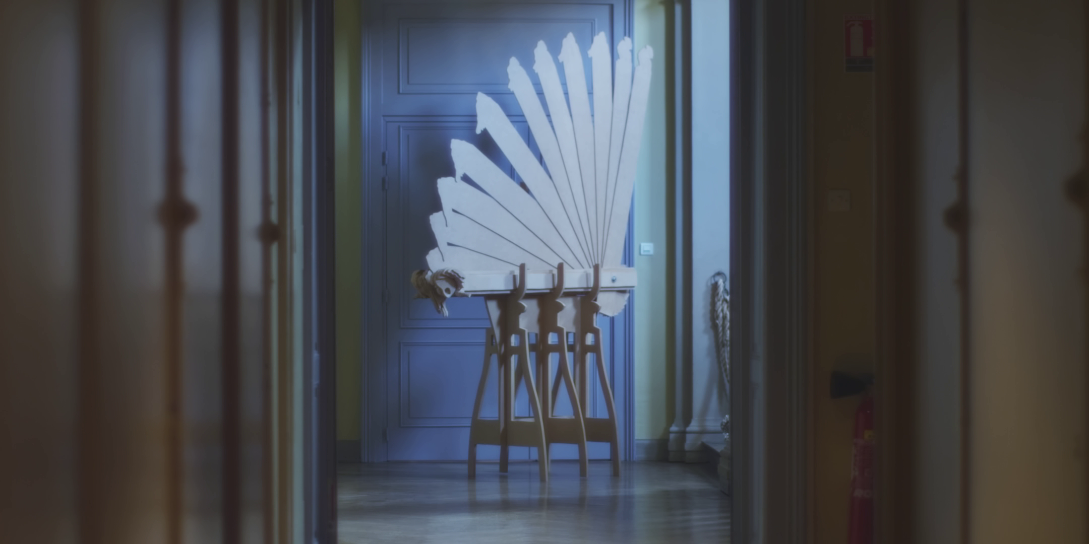 Video musicale, Objet, bois MDF, tige filetée, 200 x 200 x 60 cm